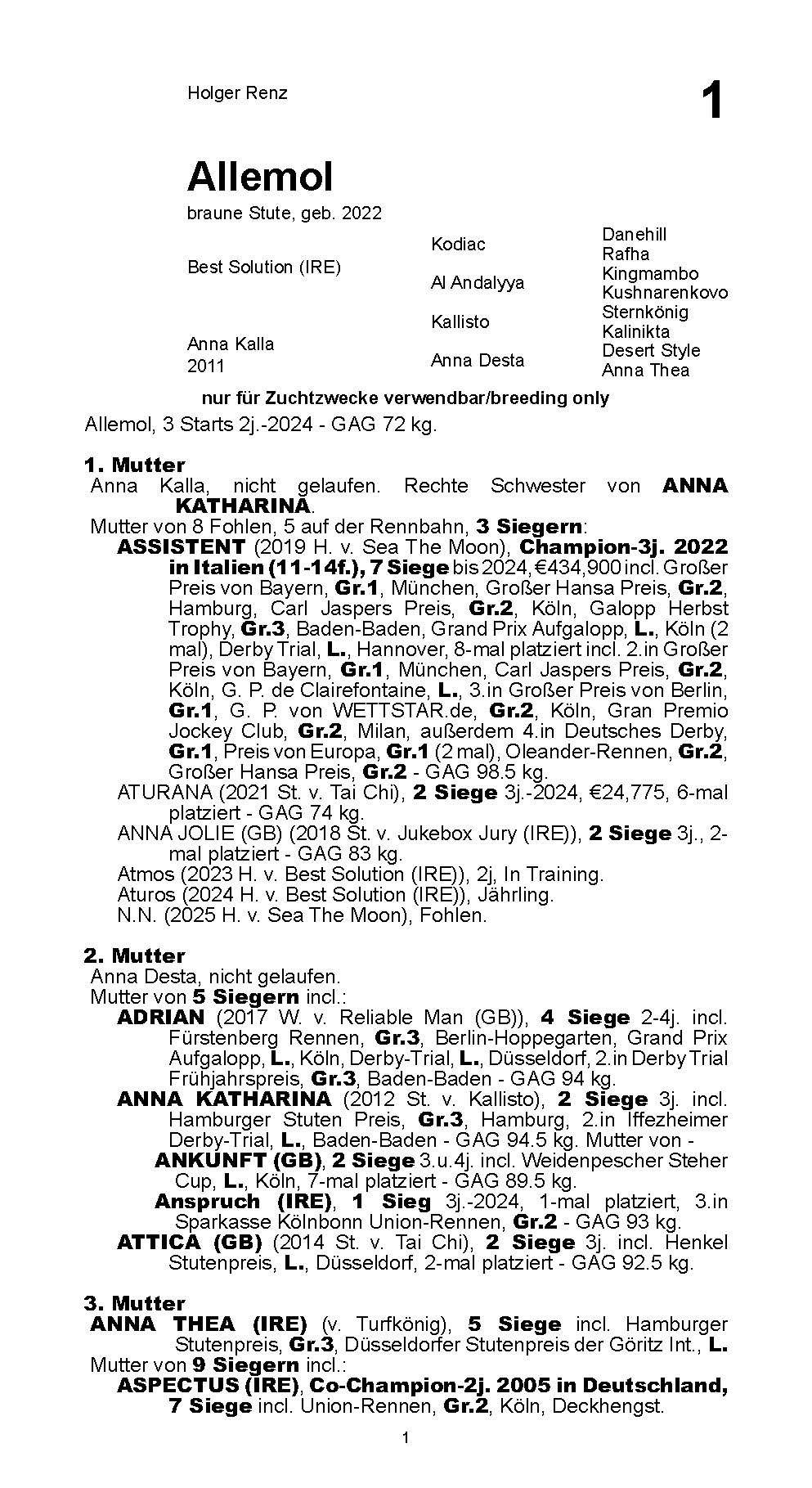 A Best Solution half-sister to the Gr.1 Grosser Preis von Bayern winner Assistent, offered as a broodmare.