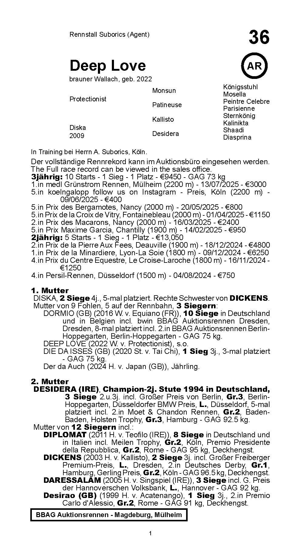 Entries: 13.09. Magdeburg Auction Race (2.050m), 04.10. Mülheim Auction Race (2.000m)