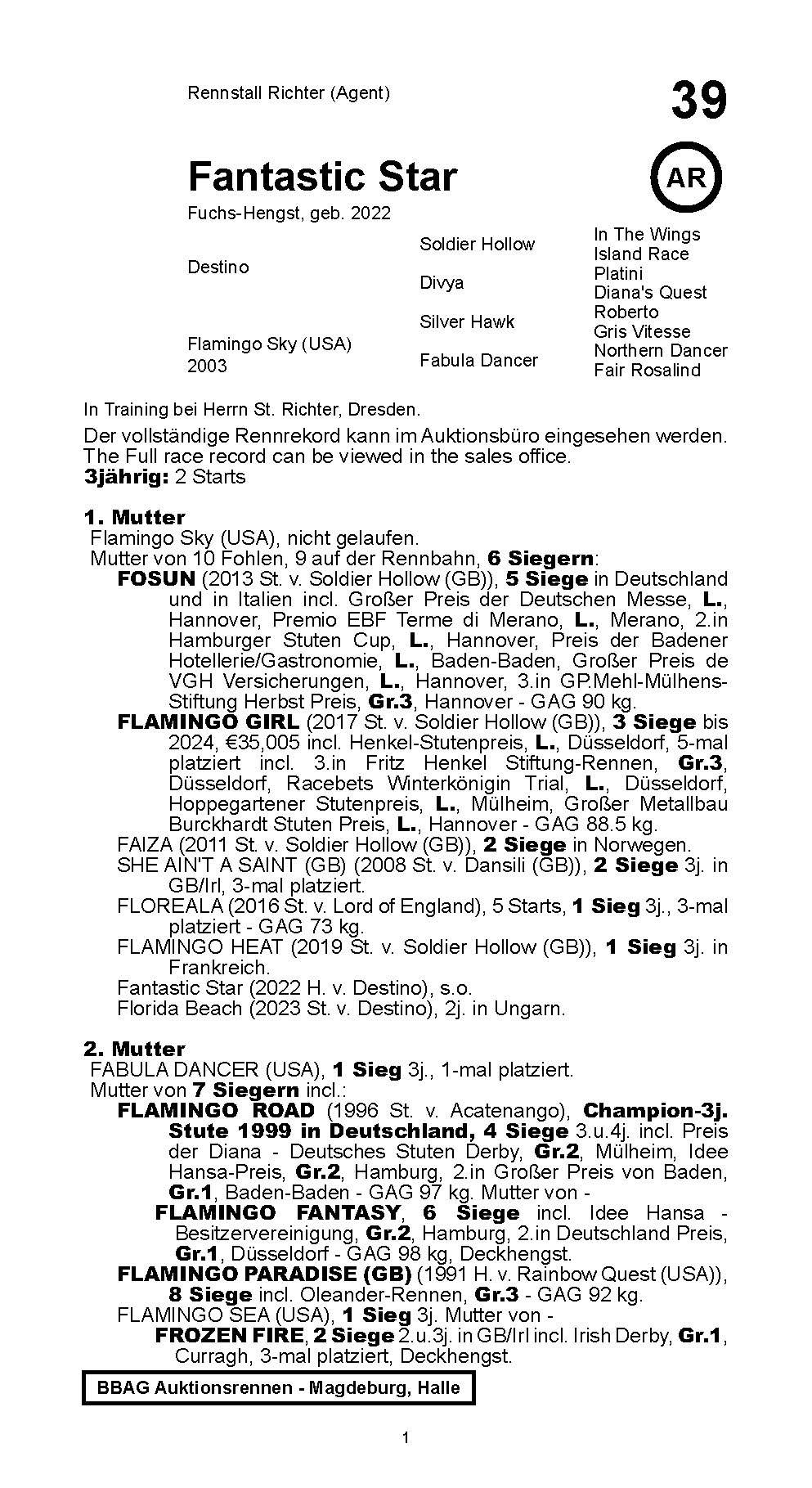 Entries: 13.09.2025 Magdeburg (2.050 m) 37.000 € BBAG Auktionsrennen, 31.10.2025 Halle (2.200 m) 37.000 € BBAG Auktionsrennen