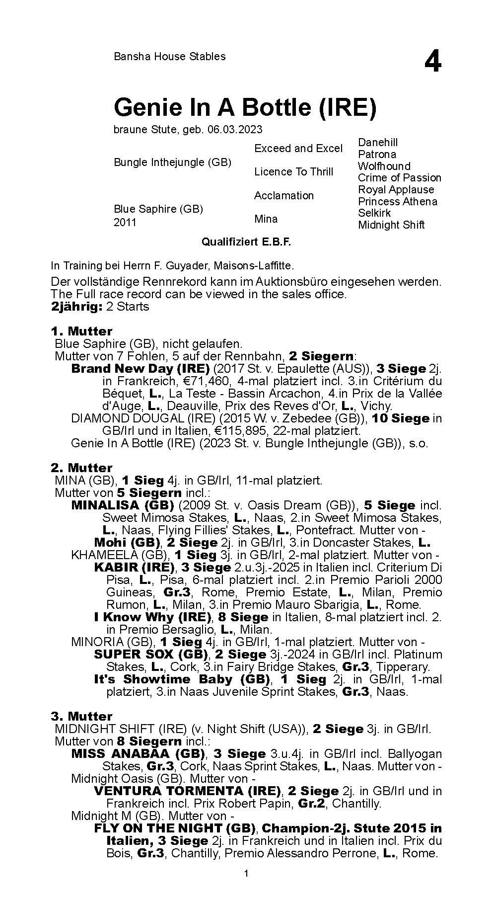 2yo Bungle Inthejungle filly out of an Acclamation mare. Sister Brand New Day earned 112.000 Euro.