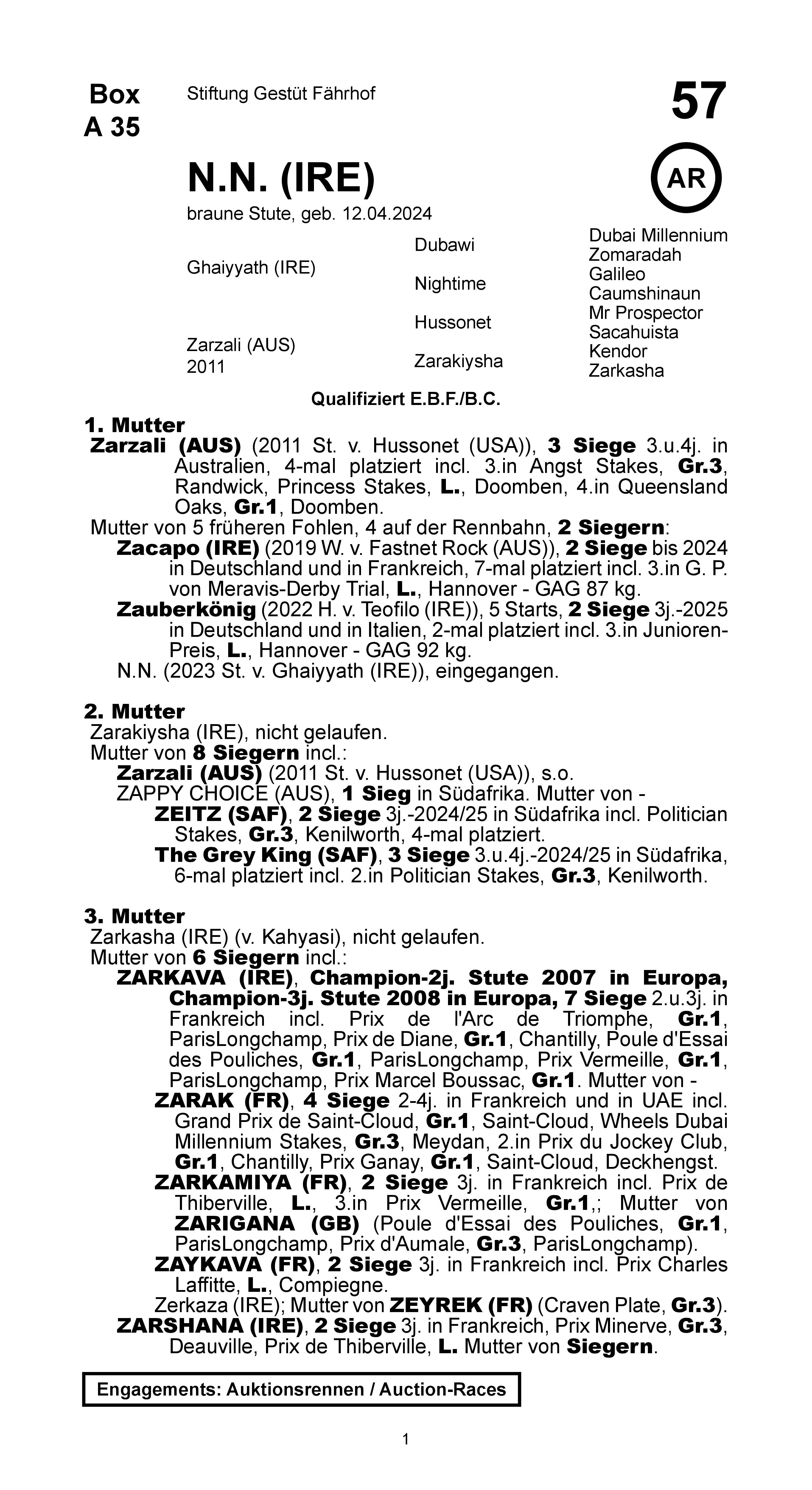 Zauberkönig (2022 H. v. Teofilo (IRE)), 7 Starts, 2 Siege 3j.-2025 in Deutschland und in Italien, 3-mal platziert incl. 3.in Junioren-Preis, L., Hannover, Hoppegartener Steherpreis, L. Berlin Hoppegarten. |