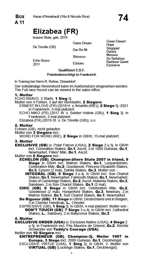 | 298 | Echo Echo | A.Klein Korres | Sales & Racing Festival 2017 | 12.000,00€ (verkauft) |