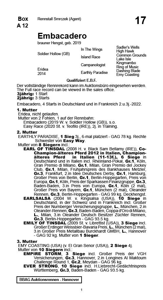 | 183 | N.N | i.A. Börnicke für Carina Horn | Jährlings-Auktion 2021 | 55.000,00€ (verkauft) |