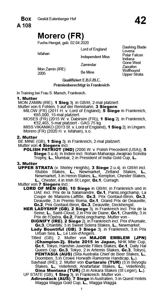 | 251 | Moses (FR) | Guido Schmitt | Jährlings-Auktion 2016 | 15.000,00€ (verkauft) |