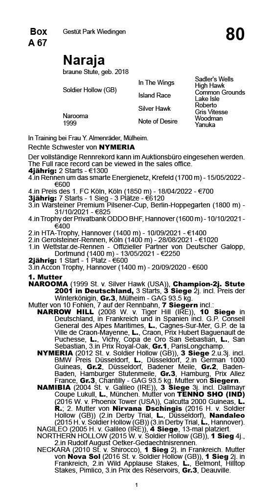 | 48 | N.N. | Con Marnane | Jährlings-Auktion 2012 | 67.000,00€ (verkauft) |