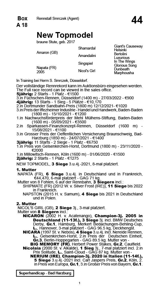 | 202 | Neshapur (FR) | Sales & Racing Festival 2017 | 14.000,00€ (zurückgekauft) |
