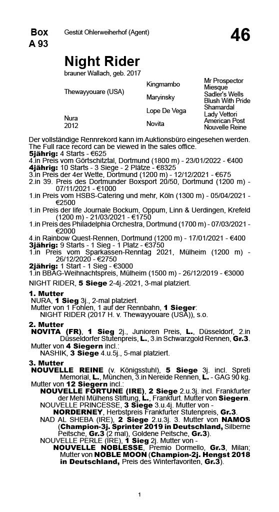 | 28 | N.N. | HFTB Racing Agency | Sales & Racing Festival 2017 | 1.800,00€ (verkauft) |