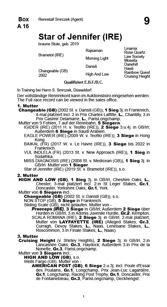 | 01.05.2022 | Rennleistung unter 1. Mutter | MISS DIAGNOSIS (IRE), Mutter von 2 Siegern. |