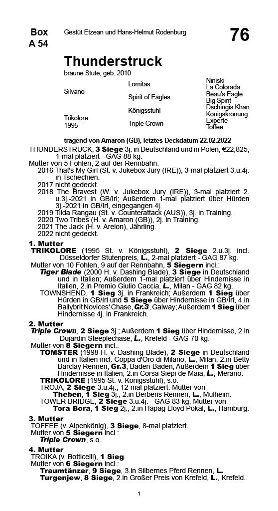 | 267 | Tia Victoria | Manfred Müller | Sales & Racing Festival 2006 | 3.000,00€ (verkauft) |