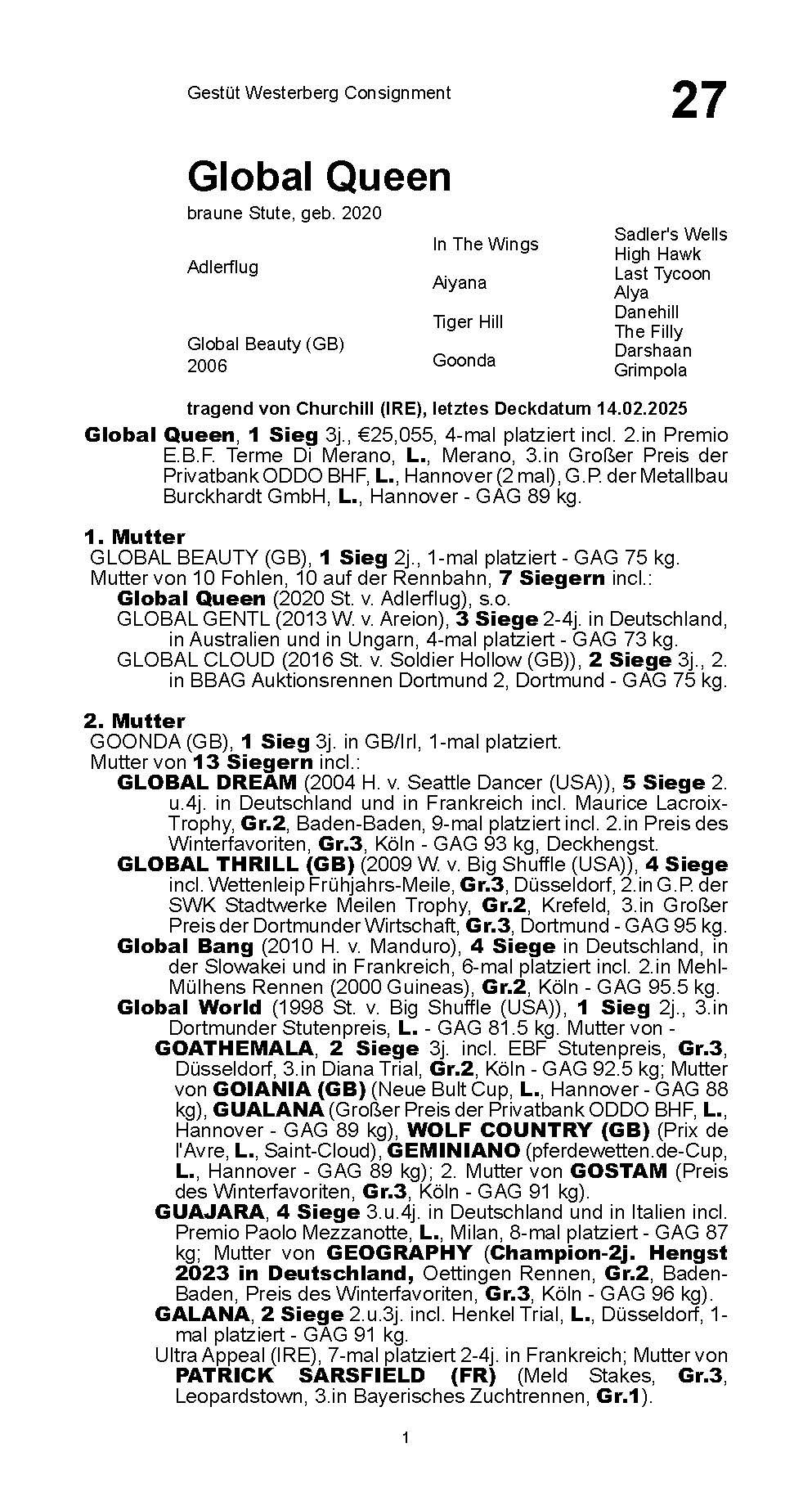 Breeding record Lot 27 Global Queen